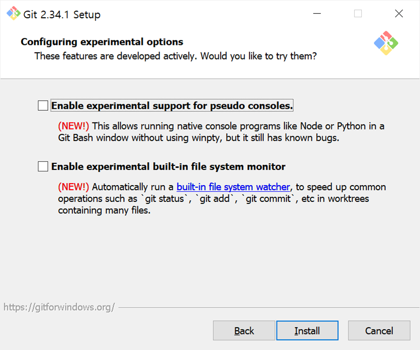 둘 다 해제된 상태에서 Install를 눌러줍니다.