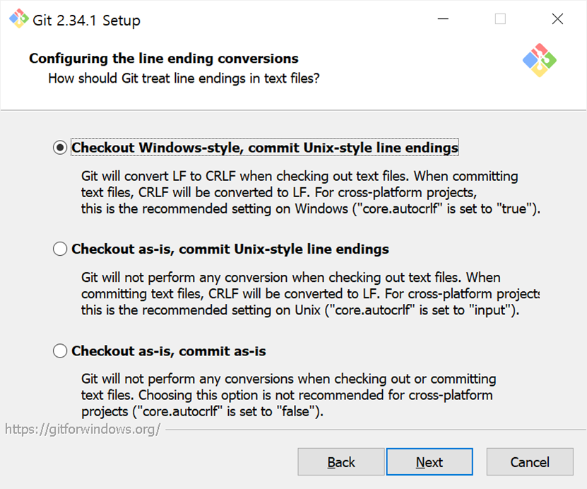 다음으로 Checkout Windows-style ~~~~~ 선택하고 Next를 눌러줍니다.