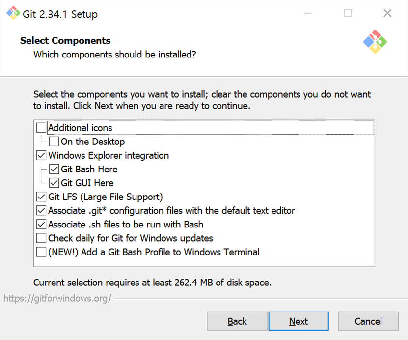 다음으로 구성 요소들을 설정하고 Next를 눌러줍니다.