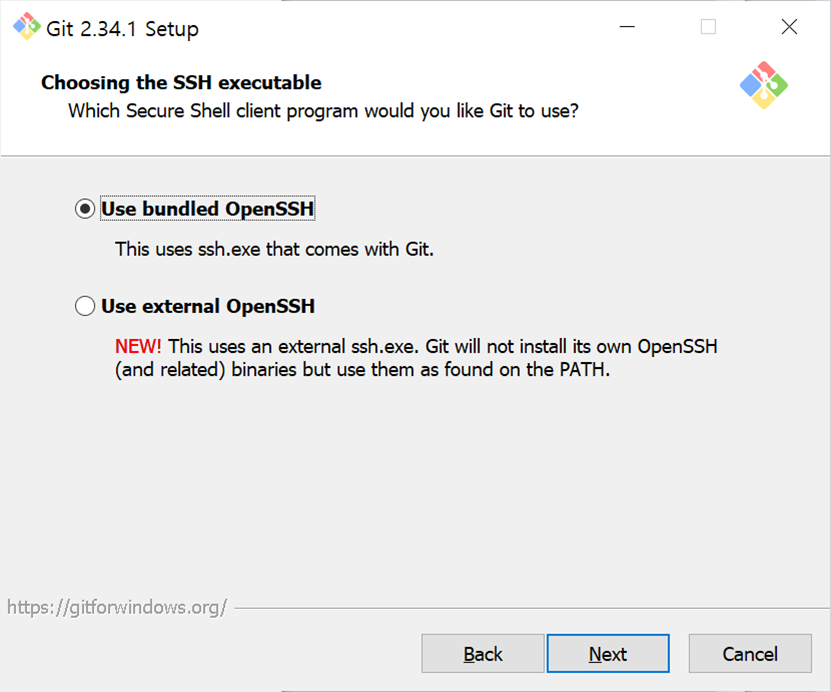 다음으로 Use bundled OpenSSH 선택하고 Next를 눌러줍니다.