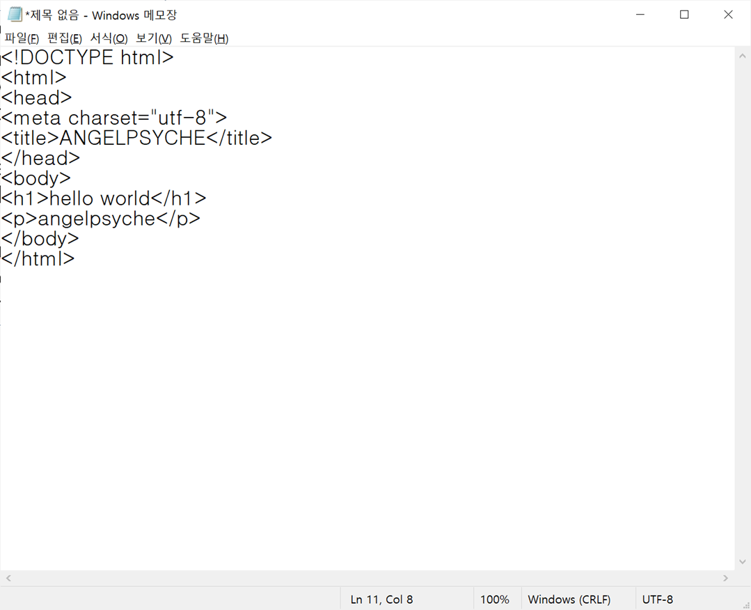 소스를 작성하기 위해 메모장을 열어줍니다.
