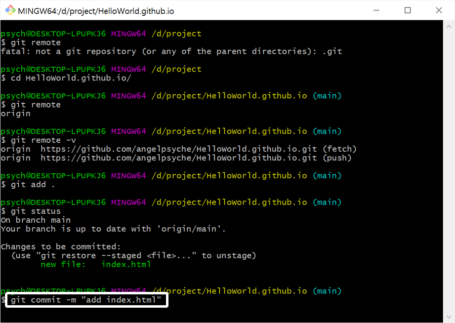 git commit -m "add index.html"