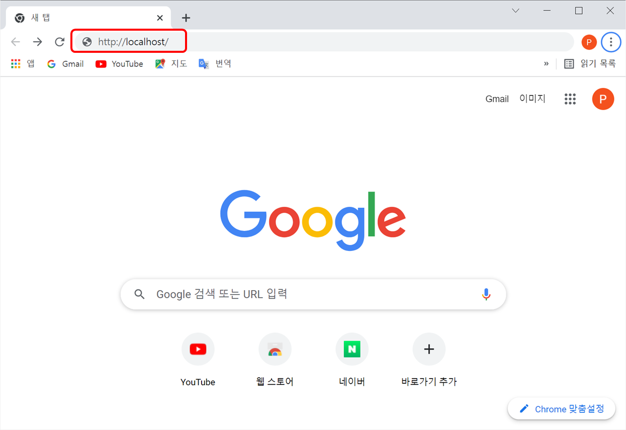 이제 동작을 확인하기 위해 인터넷 주소 입력창에