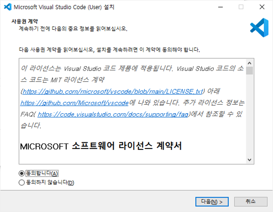 다음(N) > 버튼을 누르고 다음으로 넘어갑니다.