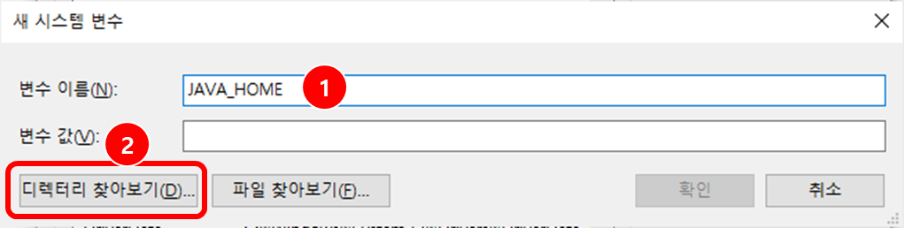 디렉터리 찾아보기(D) 입력하고 버튼을 눌러줍니다.