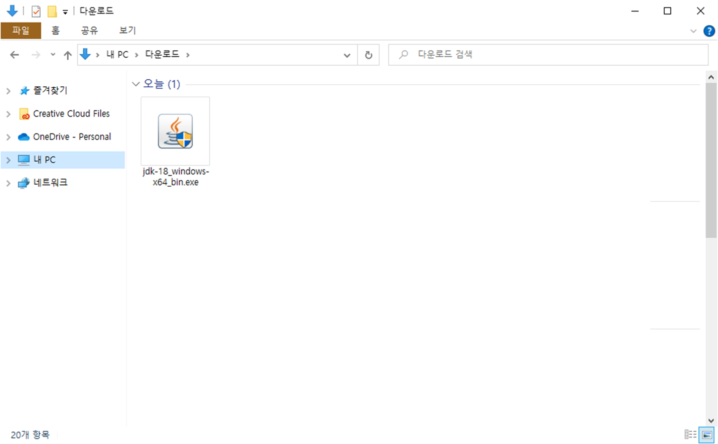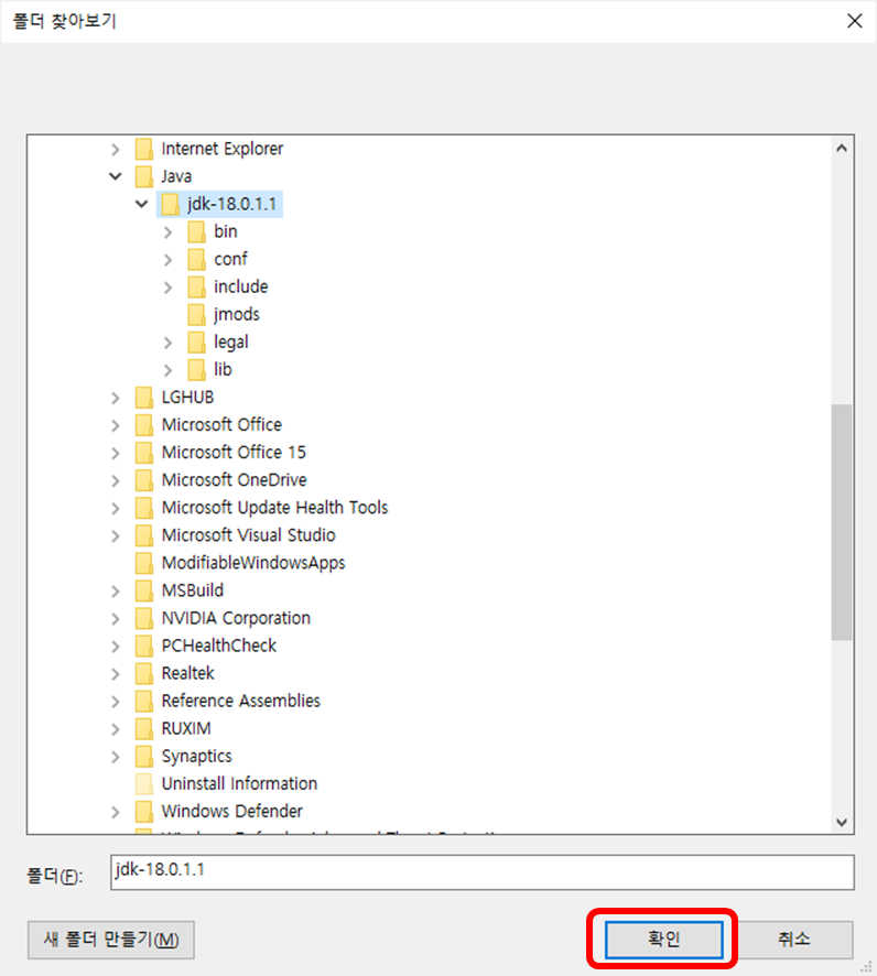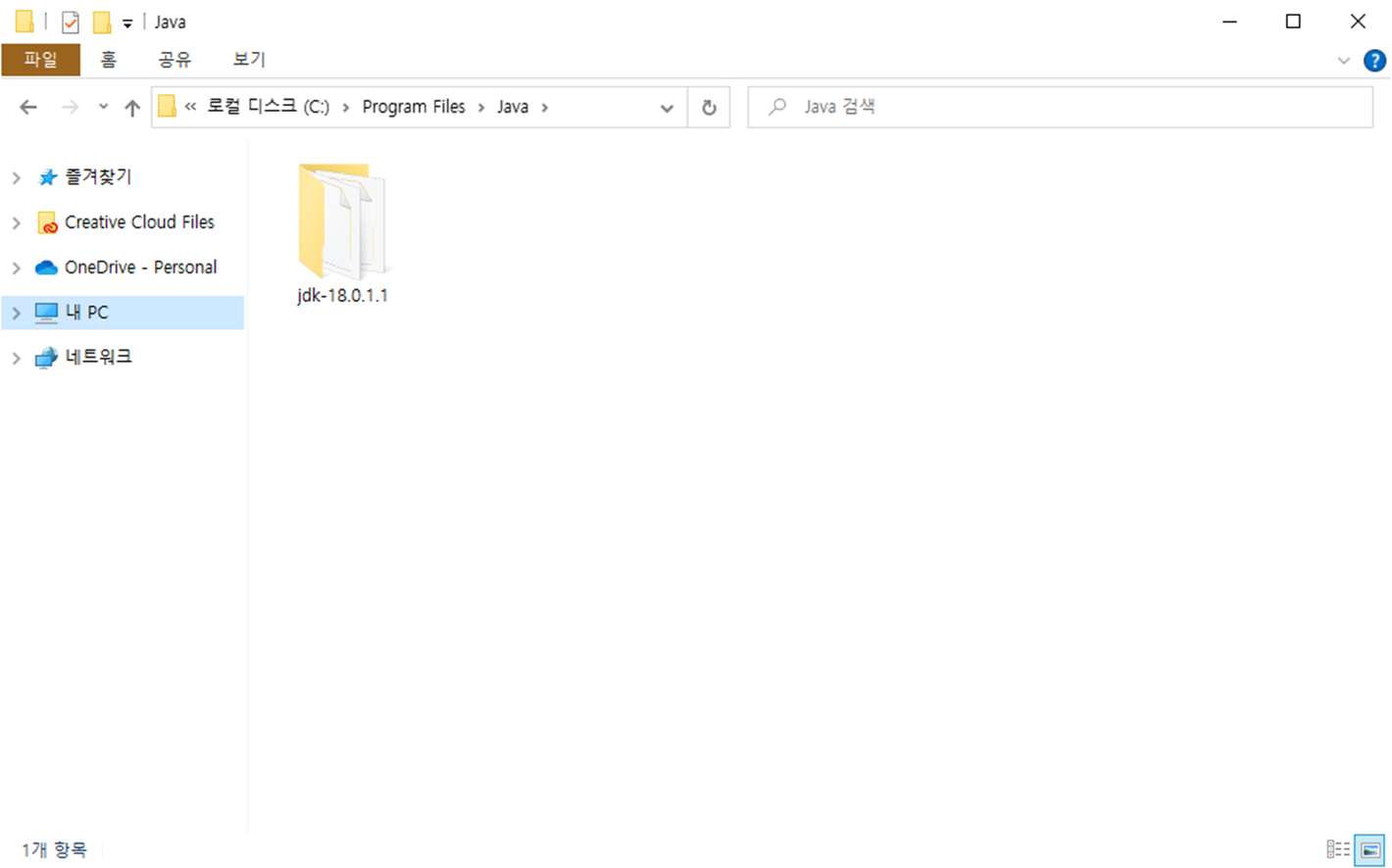 설치된 JDK 폴더는 C:\Program Files\Java\jdk-18.0.1.1 입니다.