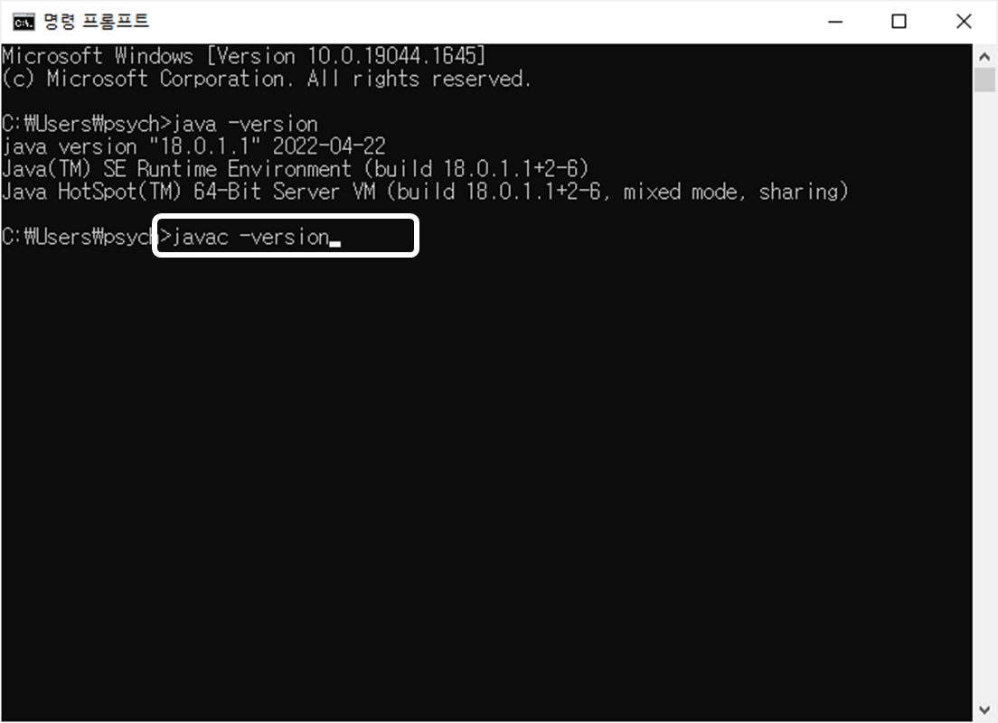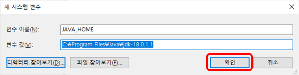 JDK가 설치된 경로는 C:\Program Files\Java\jdk-18.0.1.1 입니다.