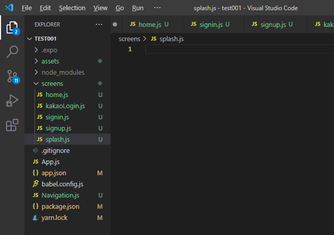 그리고 screens 폴더를 만들고 아래의 파일들을 만들어줍니다.
