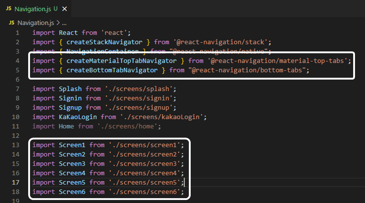 Screen2.js, Screen3.js, Screen4.js, Screen5.js, Screen6.js 모두 수정해줍니다.