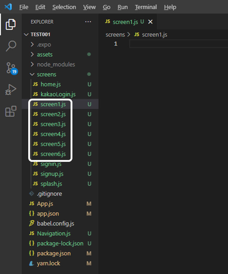 각각의 screen 파일들을 screens 폴더에 만들어줍니다.