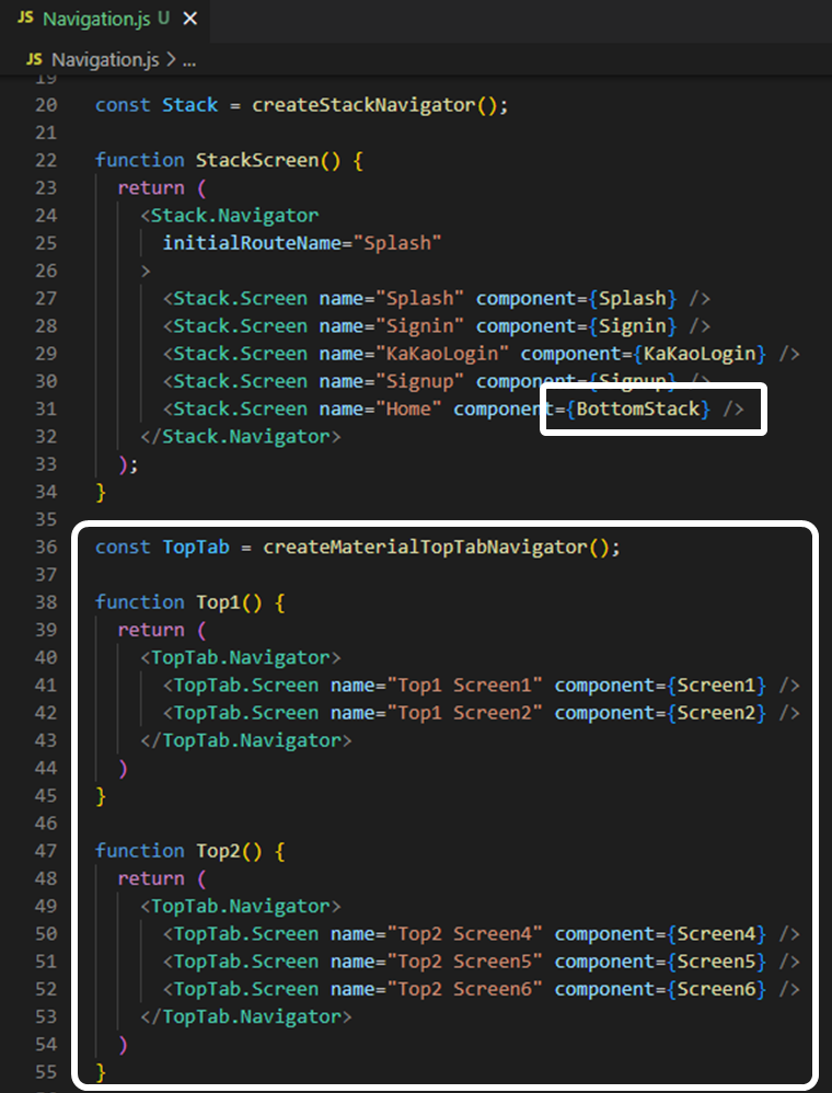 <TopTab.Screen name="Top2 Screen6" component={Screen6} />