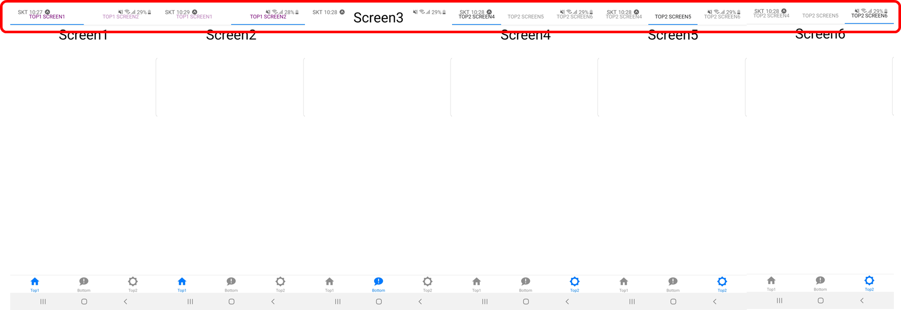 화면을 자세히 보면 Top-Tab의 위치가 이상한듯 보입니다.